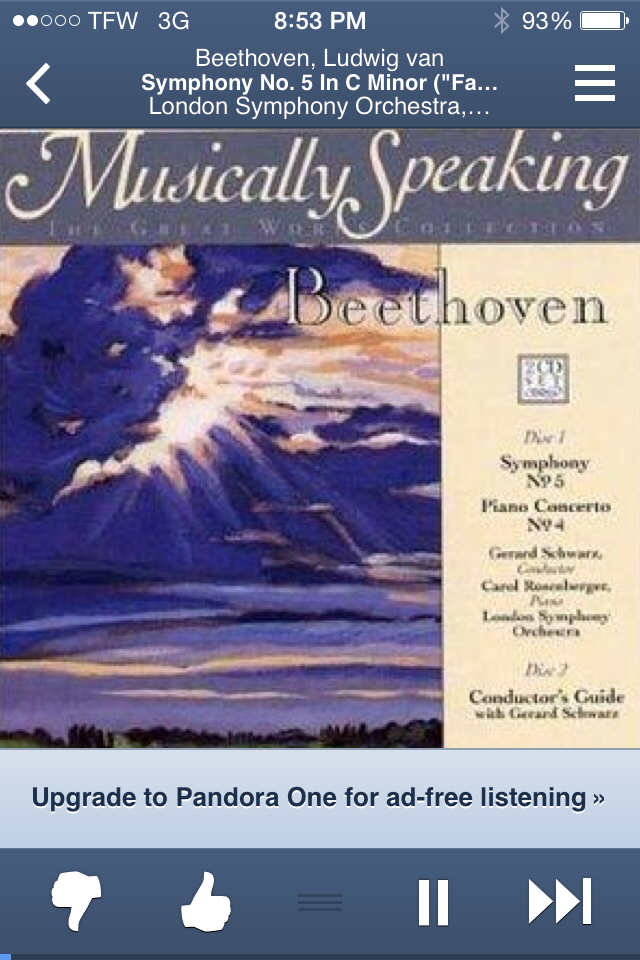 Here's what I thought as I listened to the classical music today. Why not put some words to it (along with maybe more drums, a bass, and an electric guitar)? I think the music is supposed to be telling a story, but I'm just too culturally challenged to have any idea what the story is. I don't know if the song is about love, war, worship, or dogs. There seems to be a huge need for some cultural training in my life.